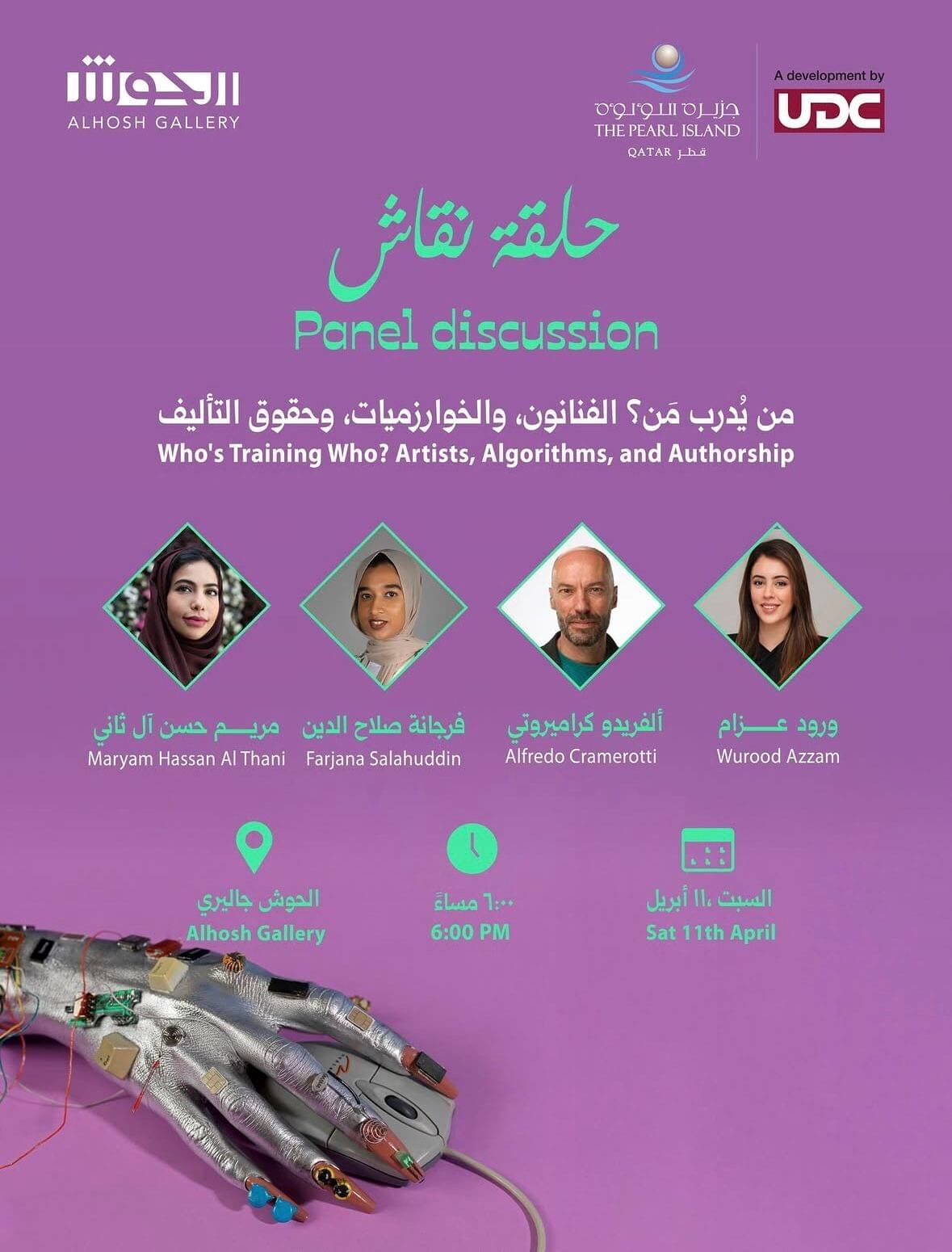 Who's Training Who? Artists, Algorithms, and Authorship - Panel discussion for the finissage of the exhibition Inshallah It Loads. With Maryam Hassan Al Thani (curator of the exhibition), Farjana Salahuddin (artist), Alfredo Cramerotti (curator and media majlis museum director), Wurood Azzam (artist).